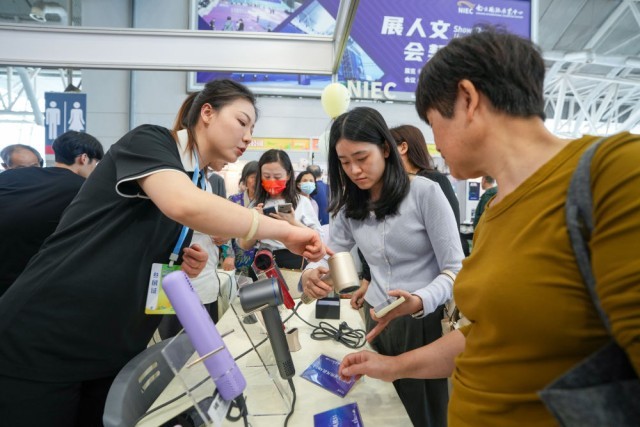 4月19日,市平易近正在勾当现场参不雅选购。当日,2025年“外贸优品中华行江苏坐”首场勾当正在江苏南京国际展览核心举行。记者 李博 摄。